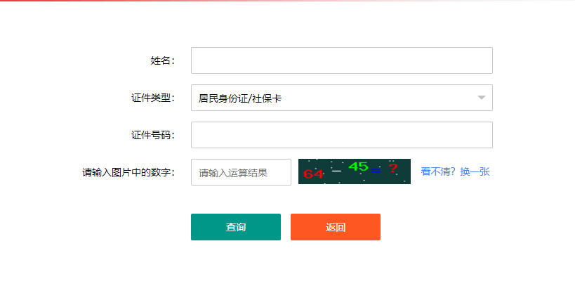 第四步:進(jìn)入準(zhǔn)考證打印頁面后,填寫個(gè)人信息,輸入姓名,選擇證件類型,輸入證件號(hào)碼,輸入圖片中的運(yùn)算結(jié)果,最后點(diǎn)擊查詢即可。